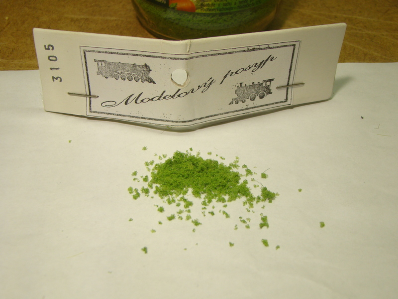 Flokovat se tentokrát už musí nějakou zelenou trávou opět délky 4-5mm. Tento flok už se stříkat nebude tak musí být zelený.