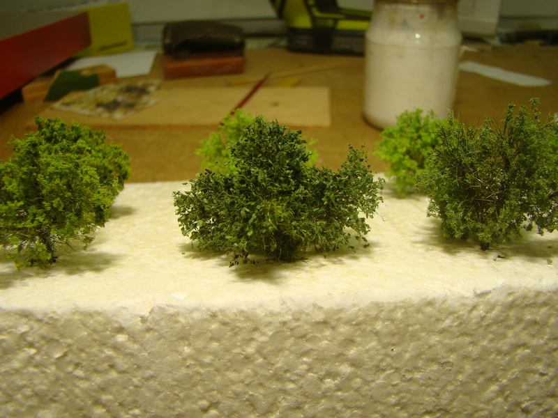 Jelikož nechci na modulu merlík ani vidět, tak jsem vyzkoušel udělat i nízké dřeviny pletené z drátu. Merlík je sice fajn, ale při přepravě modulů dostává zabrat a dlouho nevydrží neboť se poláme.