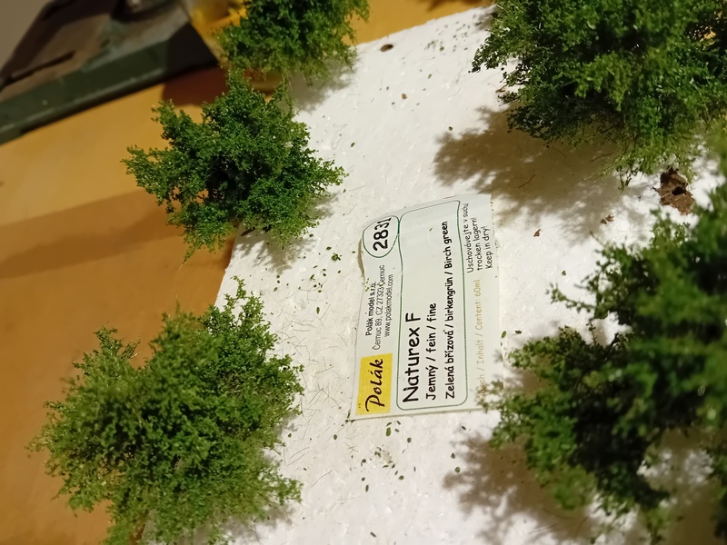 Sice tento postup je hodně podobný tvorbě křovisek, ale ať i já mám jasno jak jsem to dělal. Snahou je vytvořit takové ty náletové dřeviny které jsou snad všude kolem trati i cest.