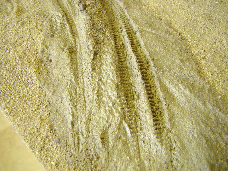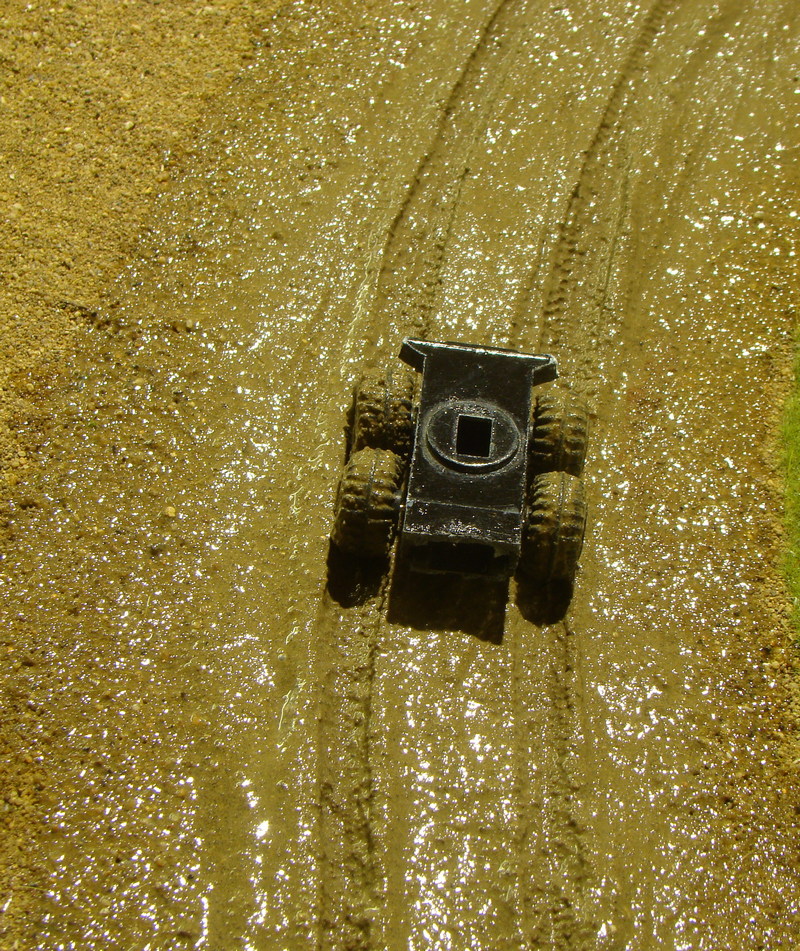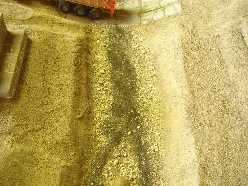 Následně jsem do toho jezdil se starým podvozkem z nějakého auta abych vytvořil rozježděné koleje.