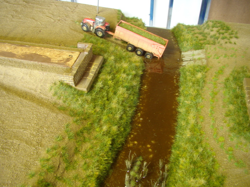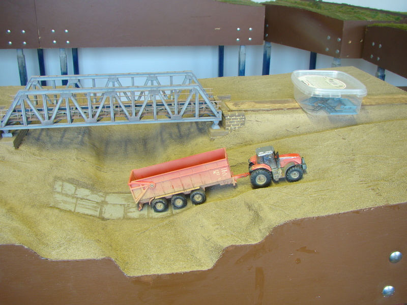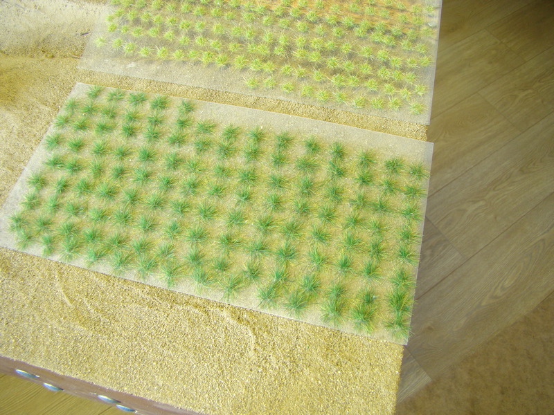 Nelíbily se mě placaté polní cesty tak jsem v jejich místě vyřezal ubrousky s hlínou až na polystyren. Místo jsem natřel opět hnědou akrylkou.