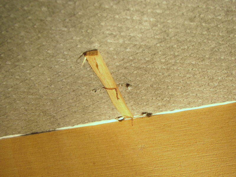 Ze spodu je daný kousek dřeva aby se drát dal utáhnout a neprořezal se do polystyrenu.