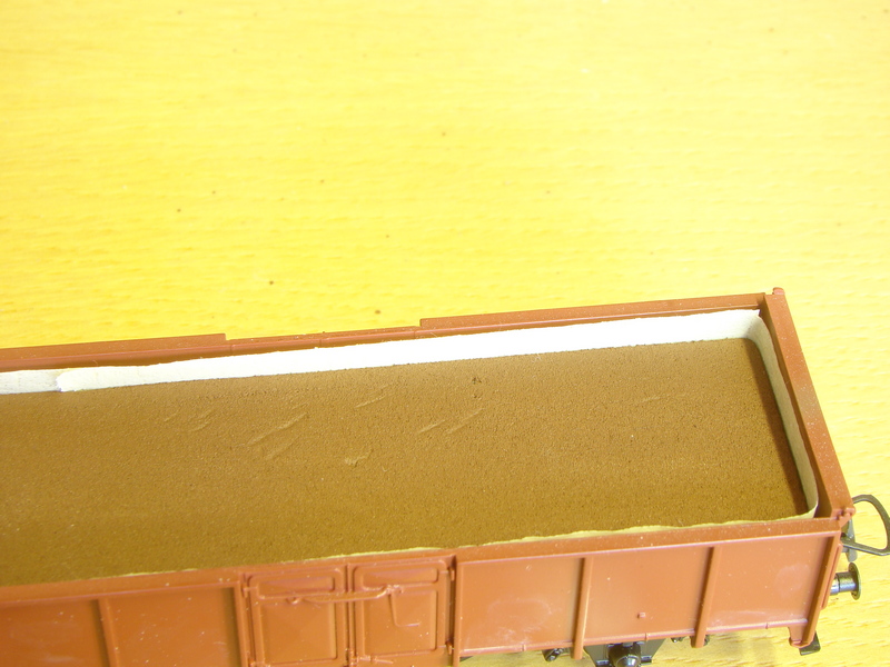 Abych nemusel vyplňovat celý prostor vagonu, tak jsem si jako základ vyřízl hranolek ze styroduru (polystyren XPS bezkuličkový). Na něj jsem nalepil oboustranku.